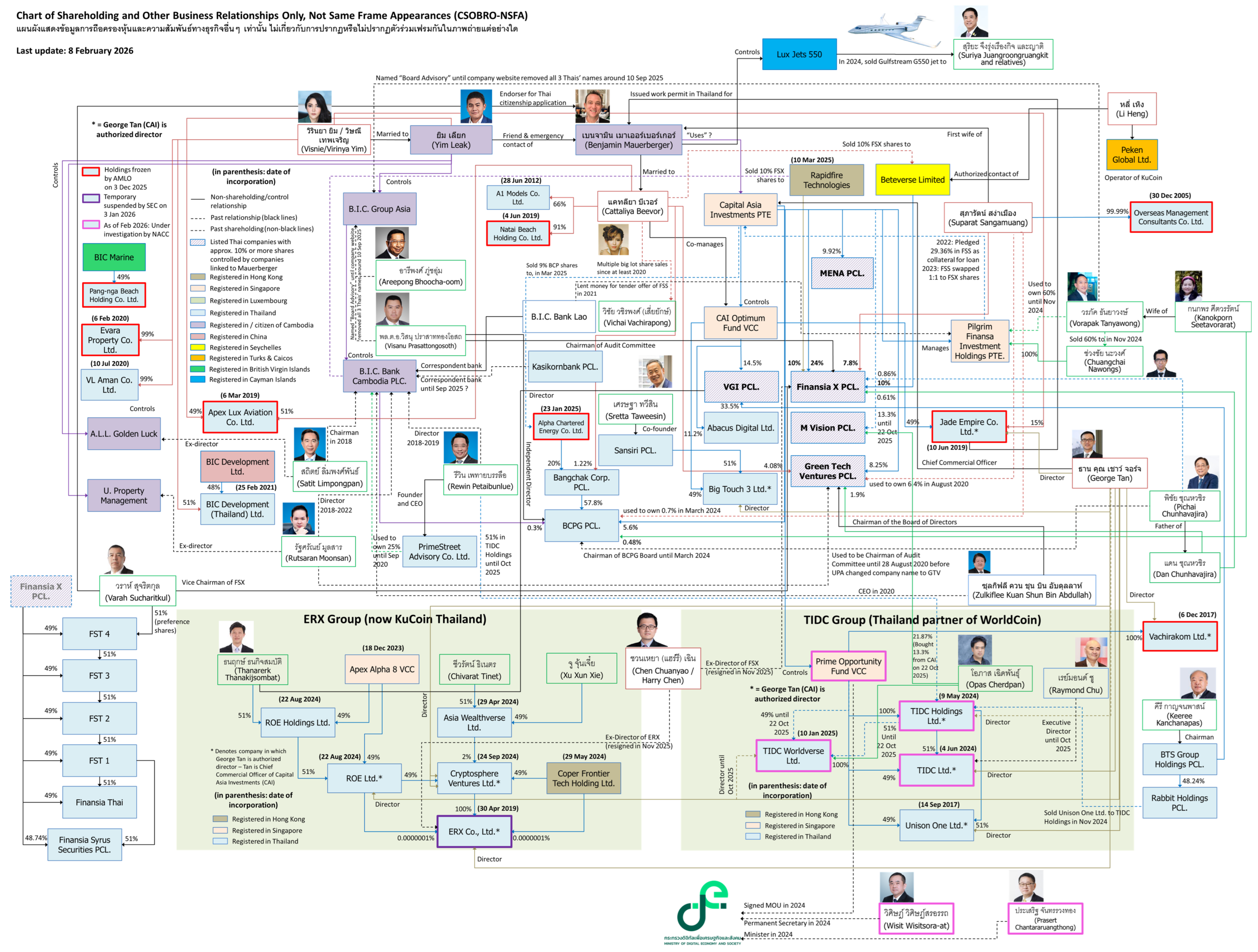 ทั้ง 5 ประเด็นที่กล่าวถึงในบทความชิ้นนั้น นอกเหนือจากการที่ ก.ล.ต. ประสานขอข้อมูลจาก ปปง. ตามข่าวเมื่อวันที่ 4 ธันวาคมแล้ว ยังไม่มีความคืบหน้าอื่นใดที่ปรากฎต่อสาธารณะ ณ สิ้นปี 2025 โดยเฉพาะประเด็นที่สุ่มเสี่ยงจะเป็นการละเมิดกฎหมายหลักทรัพย์อย่างรุนแรง นั่นคือ ข้อกล่าวอ้างที่ว่า บมจ. ฟินันเซีย เอ็กซ์ (FSX) อาจถูก “เทคโอเวอร์” อย่างลับๆ ไปแล้วโดย Kucoin บริษัทคริปโตจีน