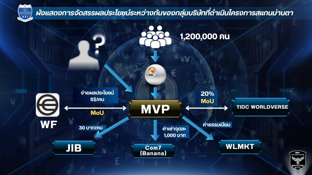 การสอบสวนของดีเอสไอพบว่า การจัดสรรผลประโยชน์ระหว่างกันของกลุ่มบริษัทไทยในดีลนี้มีความซับซ้อน มีหลายบริษัทเกี่ยวข้อง อาทิ บมจ. M Vision (MVP), TIDC Worldverse, Com7 (Banana) และ JIB (ดูแผนผังด้านล่าง ข้อมูลจากการแถลงข่าวของดีเอสไอ วันที่ 4 กุมภาพันธ์ 2026)